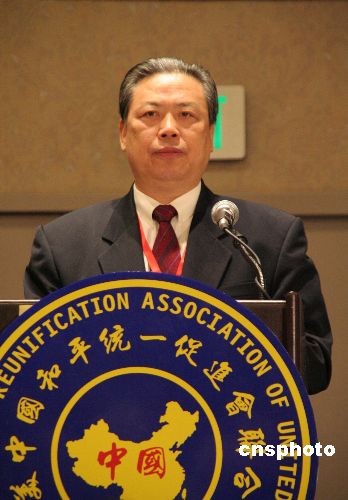 圖為全美中國和平統(tǒng)一促進(jìn)會(huì)成員與中國駐紐約總領(lǐng)事彭克玉、中國駐美大使館公使劉光源等合影留念。