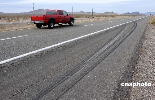 當?shù)貢r間二月五日下午,中國旅游團車禍遇難者家屬來到事故現(xiàn)場——美國亞利桑那州九十三號公路二十八英里處舉行悼念活動,寄托對親人的哀思。中新社發(fā) 張煒 攝