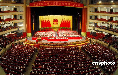 1月8日上午,重慶市第三屆人民代表大會第二次會議開幕。800多名重慶市人大代表將在5天時間內(nèi)審議《重慶市人民政府工作報(bào)告》、《重慶市高級人民法院工作報(bào)告》、《重慶市人民檢察院工作報(bào)告》等,行使人大代表權(quán)利。中新社發(fā) 郭晉嘉 攝