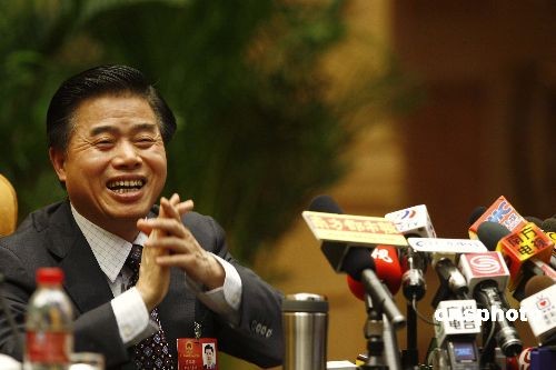 3月6日,出席十一屆全國人大二次會議的、廣東省省長黃華華在北京舉行記者招待會,接受中外記者的集體采訪。中新社發(fā) 盛佳鵬 攝