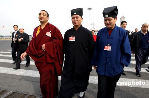 3月7日,全國政協(xié)十一屆二次會議舉行第二次全體會議,宗教界人士早早抵達(dá)人民大會堂。中新社發(fā) 傅丹丹 攝