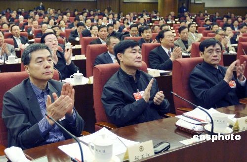 3月11日,政協(xié)第十一屆全國委員會(huì)常務(wù)委員會(huì)第五次會(huì)議在北京舉行,全國政協(xié)主席賈慶林出席并主持會(huì)議。會(huì)議通過政協(xié)第十一屆全國委員會(huì)第二次會(huì)議關(guān)于常務(wù)委員會(huì)工作報(bào)告的決議(草案),審議通過政協(xié)第十一屆全國委員會(huì)提案委員會(huì)關(guān)于政協(xié)十一屆二次會(huì)議提案審查情況的報(bào)告(草案),通過政協(xié)第十一屆全國委員會(huì)第二次會(huì)議政治決議(草案)。圖為與會(huì)委員鼓掌祝賀決議(草案)通過。中新社發(fā) 盛佳鵬 攝
