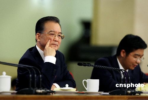圖:溫家寶表情專(zhuān)注聽(tīng)取記者提問(wèn)——中新網(wǎng)
