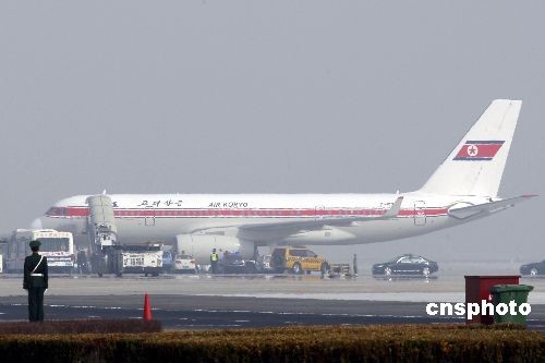 3月17日,朝鮮民主主義人民共和國(guó)內(nèi)閣總理金英日乘專(zhuān)機(jī)抵達(dá)北京首都國(guó)際機(jī)場(chǎng)。應(yīng)國(guó)務(wù)院總理溫家寶邀請(qǐng),金英日當(dāng)日上午抵達(dá)北京,開(kāi)始對(duì)中國(guó)進(jìn)行為期5天的正式友好訪問(wèn)。據(jù)悉,此訪是金英日就任總理后首次訪華。中新社發(fā) 盛佳鵬 攝