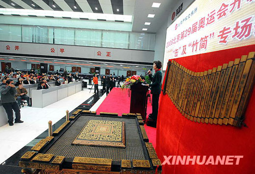 3月18日,2008年北京奧運會開幕式演出道具“缶”及“竹簡”專場拍賣會在北京產(chǎn)權(quán)交易所進行,這也是“缶”和“竹簡”的最后一場專場拍賣。羅曉光 攝
