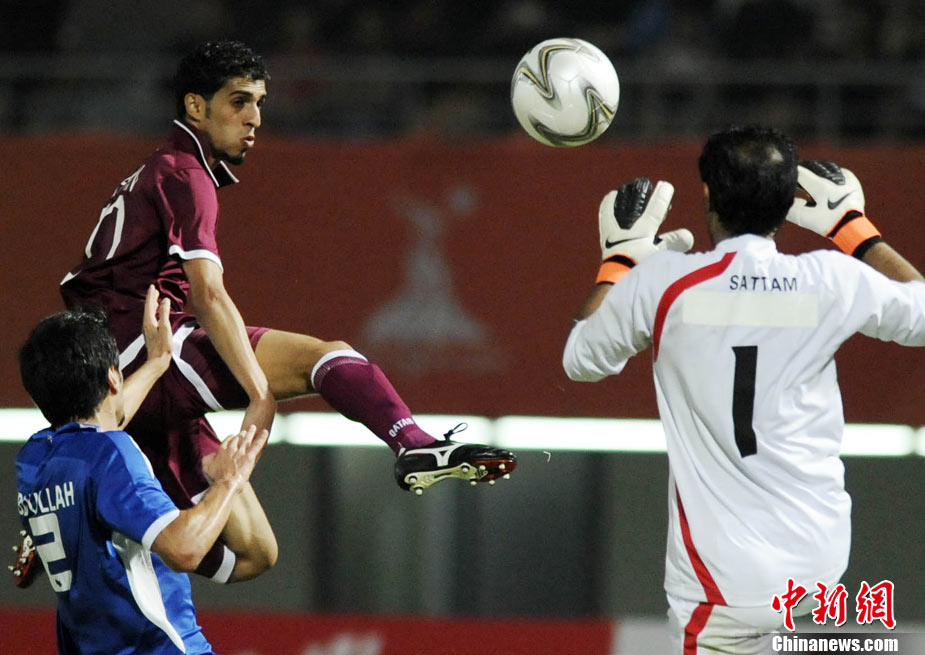 11月11日晚,廣州亞運(yùn)男足小組賽最后一輪在各大賽場(chǎng)打響,衛(wèi)冕冠軍卡塔爾2比0勝科威特小組出線。中新社記者 王東明 攝