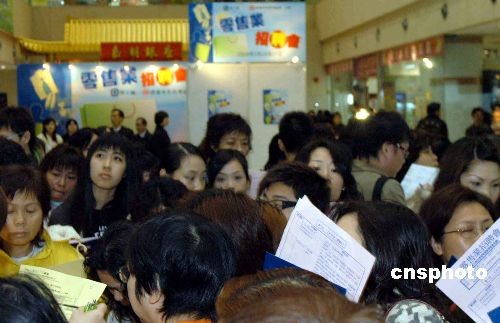 二月二十六日,香港零售管理協(xié)會與勞工處在天水圍一連兩天舉辦招聘會,大部分空缺為全職工作,主要在零售店任職經(jīng)理、店鋪主任、售貨員和收銀員等,月薪介乎五千元至一萬元,約七成的職位空缺只要求中三或以下學歷。中新社發(fā) 譚達明 攝