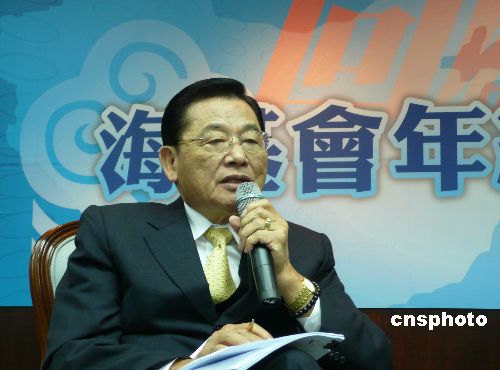 財(cái)團(tuán)法人海峽交流基金會(huì)董事長江丙坤一月二十一日在此間;鶗(huì)年終記者會(huì)上表示,兩岸關(guān)系在過去的一年中取得了三項(xiàng)突破,兩岸進(jìn)入務(wù)實(shí)往來、互信互諒階段。未來一年;鶗(huì)將繼續(xù)努力構(gòu)建兩岸良性互動(dòng)局面。中新社發(fā) 路梅 攝
