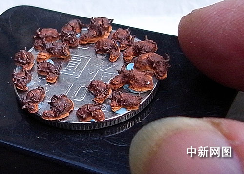 今年是農(nóng)歷牛年,臺(tái)灣著名微雕家陳逢顯特地用磚泥雕刻了十七只小牛,置于一枚十元硬幣上,以此來(lái)紀(jì)念牛年,希望臺(tái)灣經(jīng)濟(jì)能“牛轉(zhuǎn)乾坤”。
