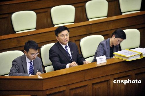 二月二十四日,香港特區(qū)財經事務及庫務局局長陳家強(中),在立法會出席雷曼事件相關聆訊。中新社發(fā) 譚達明 攝