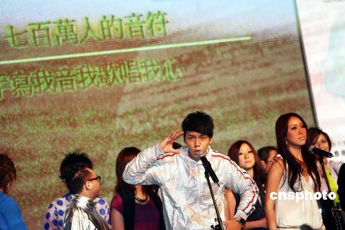 三月二十六日,香港歌手陳偉霆、鐘舒漫與一眾歌手載歌載舞演唱“七百萬人的音符”推介香港音樂匯展。當(dāng)日,由國際唱片業(yè)協(xié)會(huì)[香港會(huì)]與香港貿(mào)發(fā)局?jǐn)y手合辦的“第四屆香港音樂匯展”在會(huì)展中心舉行。中新社發(fā) 洪少葵 攝