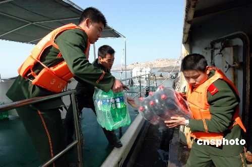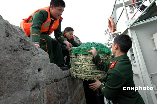 1月21日消息,春節(jié)即將來(lái)臨,浙江溫州邊防支隊(duì)給長(zhǎng)年駐守在遠(yuǎn)離大陸的海島官兵送去蔬菜、水果、飲料等各類(lèi)食品,為海島官兵提前備好年貨。中新社發(fā) 吳水斌 攝