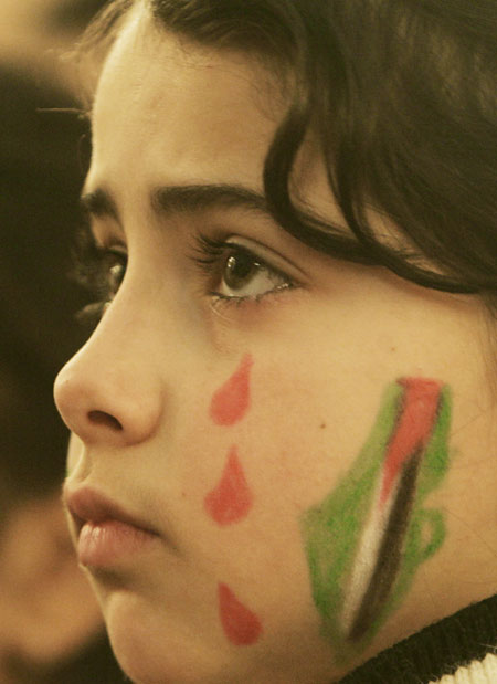 12月31日,一個(gè)臉上畫著國旗的巴勒斯坦小女孩在西岸城市拉馬拉為和平祈禱。面對國際社會巨大壓力,以色列仍然拒絕停止對加沙地帶的大規(guī)模空襲,最新統(tǒng)計(jì)數(shù)字顯示,空襲已造成至少400人死亡,近2000人受傷。