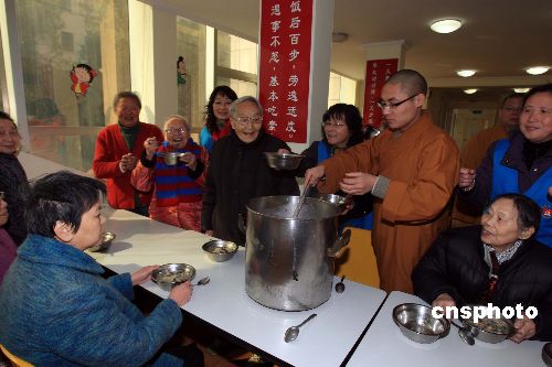 圖:上海佛教界向民眾首次施贈(zèng)臘八粥(3)——中新網(wǎng)