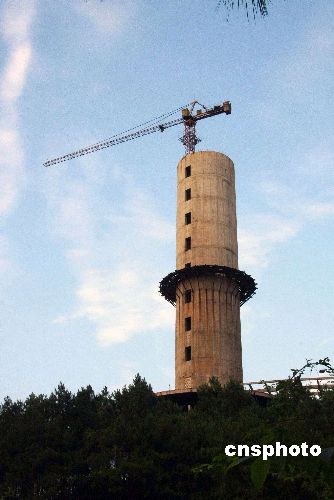 圖:“三峽明珠”觀光塔成“爛尾樓”被拆除(2)
