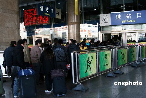 2009年1月5日,提前啟動春運的北京西站迎來了客流的高峰,進站口排起了“長龍”。中新社發(fā) 任丘 攝