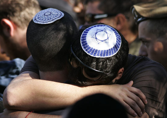 圖:以色列士兵在同伴的葬禮上相擁哭泣——中新網
