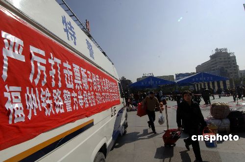 福州火車站廣場張貼舉報電話嚴(yán)打票販子。