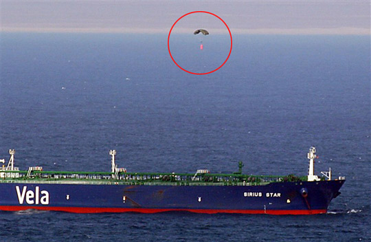 美國海軍的監(jiān)測部門指出,沙特超級油輪“天狼星號”在被挾持近兩個月后,9日有一架小飛機(jī)突然飛越船只上空,并丟下帶有降落傘的“包裹”,而這個包裹應(yīng)該就是用來贖人的300萬美元。根據(jù)各方信息,索馬里海盜在確認(rèn)接收贖款后,已經(jīng)釋放25名船員,讓油輪駛離索中部的哈拉赫里港。