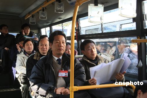 圖:上海政協(xié)委員坐公共汽車赴會(huì)
