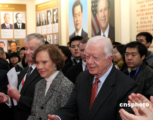 圖:美國前總統(tǒng)卡特參觀中美建交30年圖片展