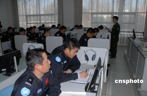 維和防暴隊(duì)員進(jìn)行外語(yǔ)學(xué)習(xí)。中新社發(fā) 由永懷 攝
