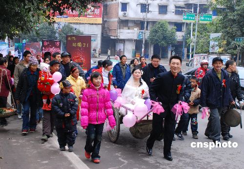 趣圖:重慶梁平小伙10輛“板車”迎娶新娘(2)——中新網