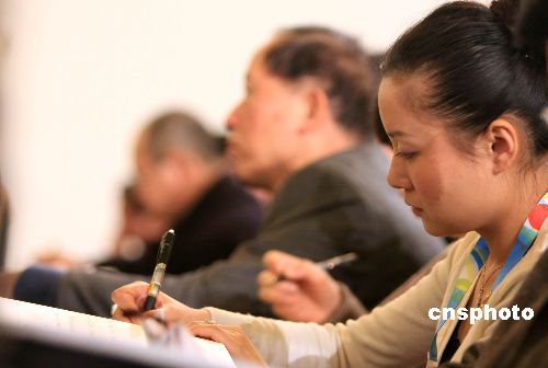 1月15日,受金融危機(jī)影響,大學(xué)生就業(yè)難、企業(yè)裁員等社會民生問題成為今年上!皟蓵北姸啻頍嶙h的話題。作為上!80后”市人大代表,朱慧慧積極建言獻(xiàn)策,尤其對大家關(guān)心的民生問題提出很多自己的建議。中新社發(fā) 湯彥俊 攝