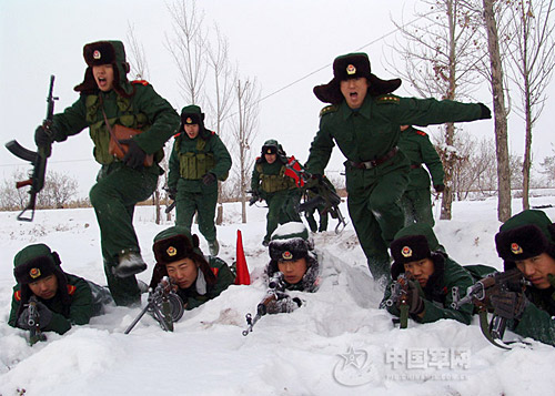 圖:武警新疆兵團(tuán)官兵頂風(fēng)冒雪練硬功(2)——中新網(wǎng)
