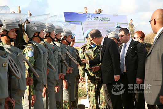在秘書長(zhǎng)視察維和部隊(duì)4個(gè)小時(shí)的緊張行程中,中國(guó)掃雷官兵是秘書長(zhǎng)此行單獨(dú)接見(jiàn)的唯一一支任務(wù)分隊(duì),中國(guó)營(yíng)長(zhǎng)是唯一一個(gè)被單獨(dú)接見(jiàn)的維和分隊(duì)指揮官。
