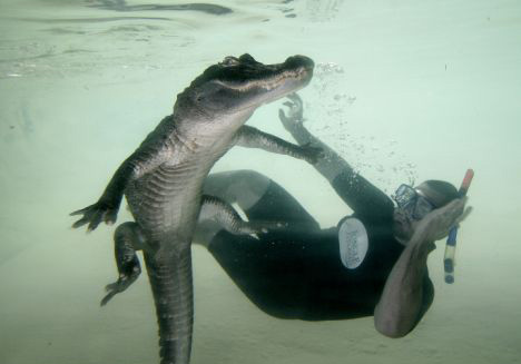圖:美國男子無任何保護措施“與鱷共舞”(2)