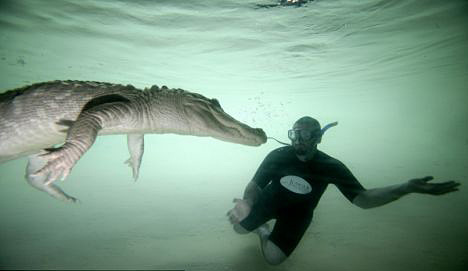 圖:美國男子無任何保護措施“與鱷共舞”(4)