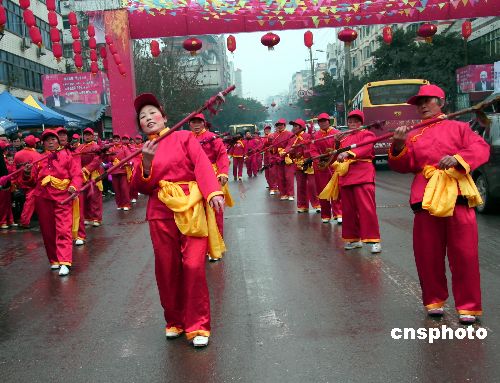 1月26日,正月初一,四川華鎣市舉行民俗文化排街展演,10余個精彩地方民俗節(jié)目,吸引了數萬市民觀看。中新社發(fā) 楊天軍 攝