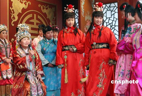 1月27日 (大年初二),北京大觀園十四屆紅樓廟會(huì)吸引眾多假日游客,本屆廟會(huì)以弘揚(yáng)中華傳統(tǒng)文化為宗旨,以展現(xiàn)紅樓文化為主題,呈現(xiàn)出改革開放30年來新北京、新宣武的精神風(fēng)貌。廟會(huì)主要活動(dòng)有“元妃省親”、“寶黛成婚”“賈母賀壽”、紅樓文化展覽--木版年畫展、紅樓夢人物火花展以及紅樓美食展示區(qū)等。圖為在紅樓廟會(huì)上由一對(duì)雙胞胎扮演的“賈寶玉”富有戲劇色彩。中新社發(fā) 錢興強(qiáng) 攝