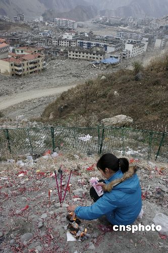 圖:北川遇難者家屬除夕故里悼亡靈——中新網(wǎng)