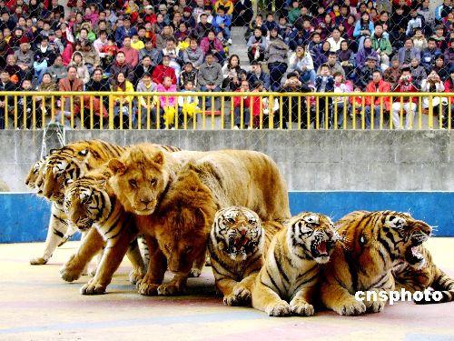 圖:廣西南寧老虎獅子為游人作揖拜年(2)——中新網(wǎng)