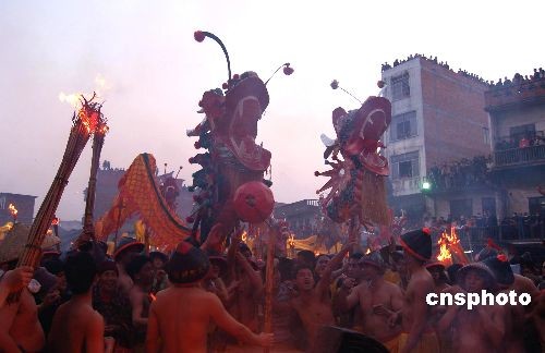 2月5日,廣西南寧賓陽縣舉行當(dāng)?shù)貍鹘y(tǒng)的“炮龍節(jié)”,整個(gè)縣城一百多條巨龍狂舞,震耳欲聾的鞭炮響徹一晚,四十多萬人參與狂歡。被譽(yù)為“中國狂歡節(jié)”的賓陽縣炮龍節(jié)是中國國家級非物質(zhì)文化遺產(chǎn),節(jié)日當(dāng)天主要街道上群龍勁舞,鞭炮齊鳴。每條炮龍長達(dá)三四十米,被視為新年神物,以“龍牌”、鑼鼓、八音開路,花籃火把相隨,眾大漢赤膊上陣,沿街游舞。臨街的商家住戶和游客把一串串鞭炮丟往龍身上炸龍,以祈求來年風(fēng)調(diào)雨順,富貴平安。
