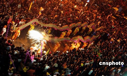 圖:數(shù)十萬泉州市民游火龍鬧元宵——中新網(wǎng)
