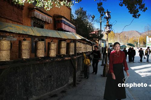 拉薩城的藏族姑娘。中新社發(fā) 扎西朗杰 攝