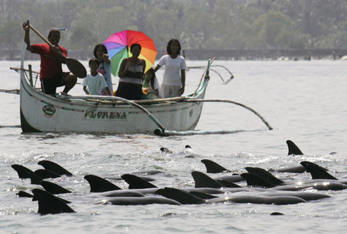 組圖:數(shù)百只海豚被困菲律賓海灘