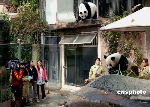 圖:臺(tái)灣電視臺(tái)攝制組聚焦福州熊貓世界——中新網(wǎng)