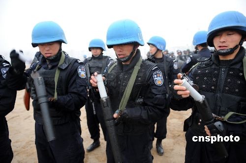 圖:中國赴海地維和警察防暴隊冒雨訓(xùn)練(4)——中新網(wǎng)