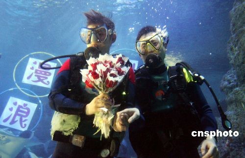 圖:福州情侶情人節(jié)體驗“海底”浪漫(2)——中新網(wǎng)