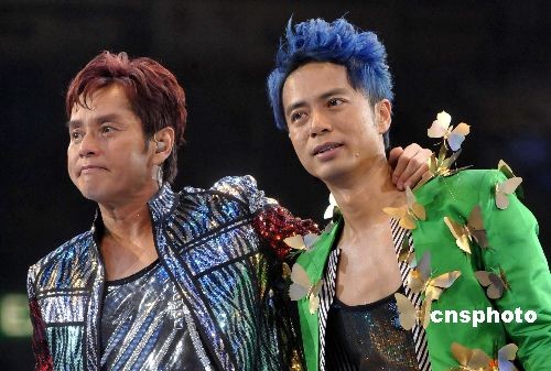 二月十四日晚,“香港二零零九東亞運(yùn)動(dòng)會(huì).左麟右李演唱會(huì)”在香港紅磡體育館作尾場(chǎng)演出。中新社發(fā) 鄧慶樂(lè) 攝
