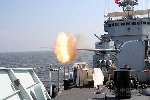圖:東海艦隊(duì)?wèi)?zhàn)艦主炮在強(qiáng)電磁干擾下對(duì)海射擊(2)——中新網(wǎng)