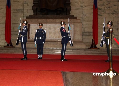 2月21日,臺(tái)灣“中正紀(jì)念堂”儀仗隊(duì)正在進(jìn)行精彩的操槍表演。自1月24日恢復(fù)儀仗隊(duì)表演以后,紀(jì)念堂內(nèi)游客大增。中新社發(fā) 陳立宇 攝