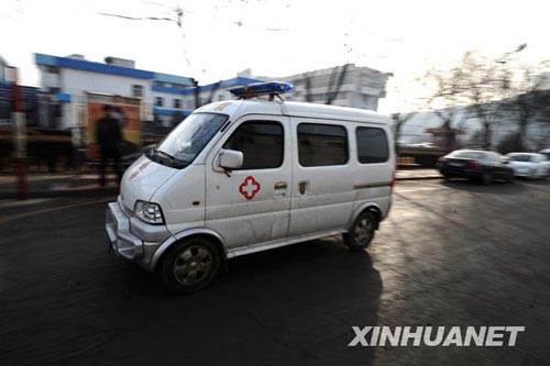 2月22日,一輛救護(hù)車(chē)正趕往事故現(xiàn)場(chǎng)。燕雁 攝
