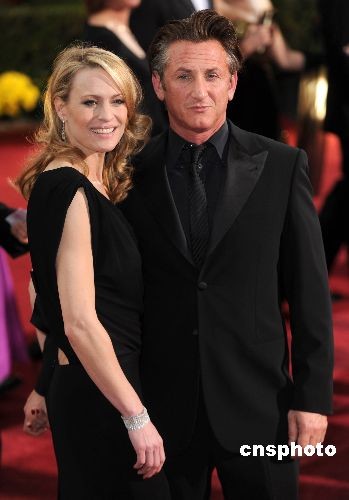 本屆影帝最大熱門(mén)肖恩·潘攜妻子羅賓·懷特一同走過(guò)紅地毯。中新社發(fā) 張煒 攝