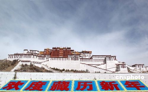 圖:布達(dá)拉宮巨型花朵字幅迎藏歷新年——中新網(wǎng)