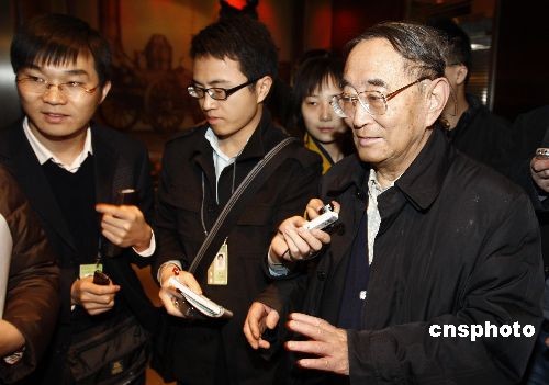 全國“兩會”即將開幕,代表、委員們3月2日陸續(xù)抵京報(bào)到。圖為民盟中央原名譽(yù)副主席、北京大學(xué)光華管理學(xué)院名譽(yù)院長厲以寧在北京駐地報(bào)到時(shí)遭遇記者“圍攻”采訪。中新社發(fā) 盛佳鵬 攝